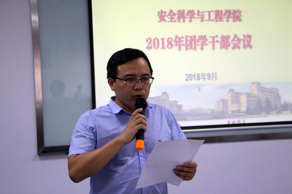 党委书记杜勇在讲话中对团学干部贯彻学习习近平新时代中国特色社会主义思想带领全院学生取得的成绩表示肯定;结合学校“一流大学一流学科”建设大会上蒋林校长对安全学科发展的要求提出四点希望:希望学生干部能努力学习练就过硬本领;希望学生干部能主动思考勇于创新创造;希望学生干部深入领会习近平总书记对广大青年提出的希望与要求,积极奉献做好青年友、不做青年“官”;希望学生干部能严于律己以身作则做好学生榜样,为创建在国内一流的研究教学性学院贡献自己应有的力量!