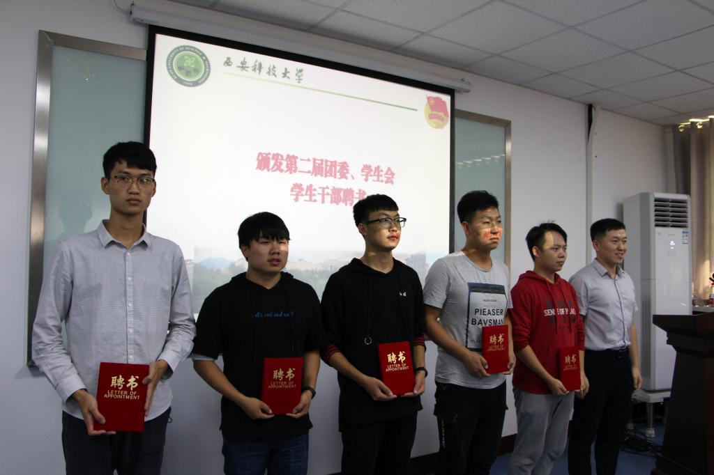 第二届团委副书记王建安对2017年团学工作进行了总结;党委副书记田园、副院长翟小伟为先进部门颁发了奖状;学院团委委员、辅导员王倩、同超、袁刚分别为第二届学生干部颁发聘书;团委副书记、研究生辅导员曹月宣布第三届团委、学生会主要学生干部任职名单;第三届学生会主席安星虣代表全体学生干部作表态发言。