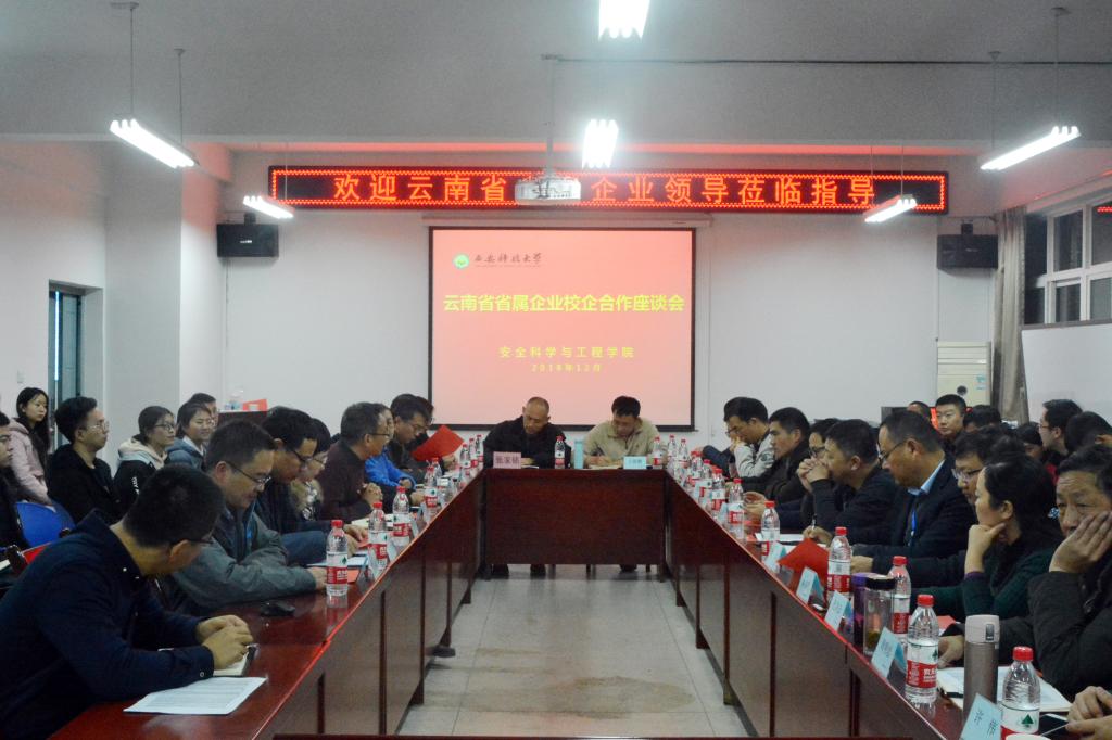 在14教323室与云南省省属企业举行了校企合作座谈会。云南省政府应急办调研员龙榆、国资委办公室副调研员张家铭、云南省住建厅副调研员陈小华、国资委规划处主任科员王新鹏、及云南省消防总队、云南昆钢控股、云南云锡集团、云南省建投集团、云南省交投集团、云南省城投集团、云南省水利投资集团、云南省华宁国资公司等单位的安监部门负责人、校学生工作部副部长孙再罗、91社区