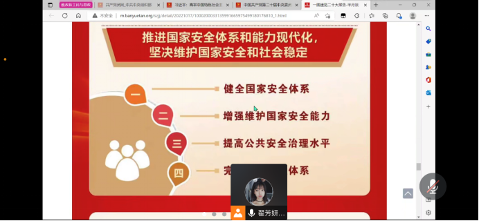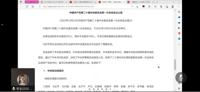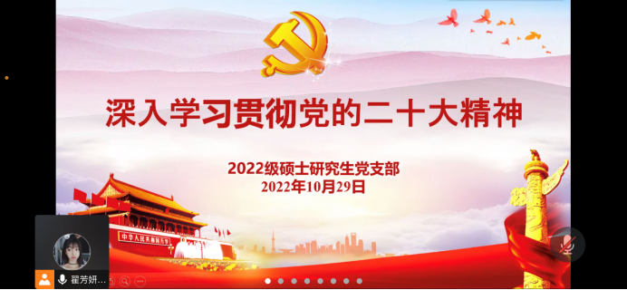 10月29日晚,91社区 2022级硕士研究生党支部通过腾讯会议,组织全体党员学习党的二十大精神。会议由支部书记翟芳妍主持。