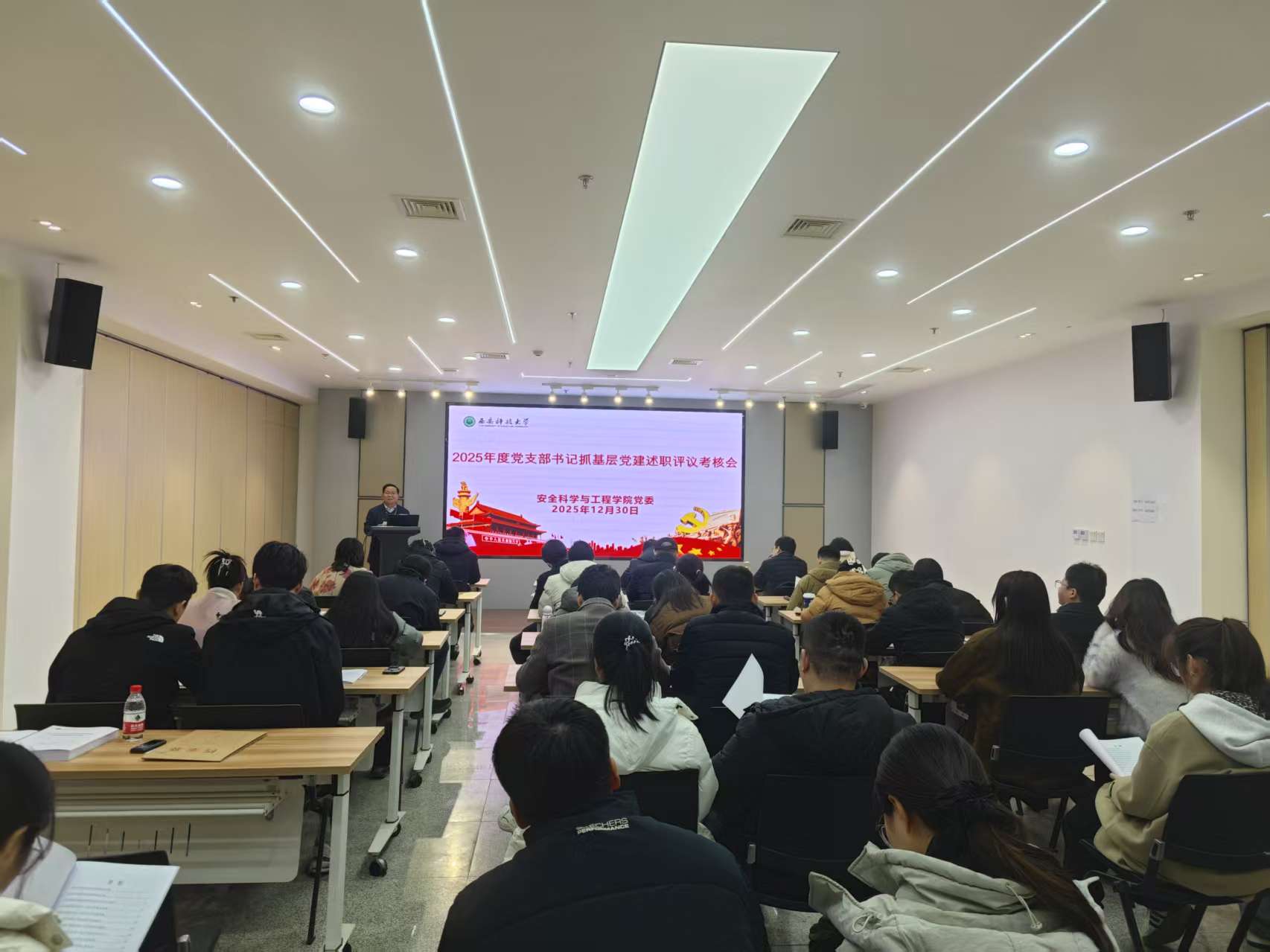 12月30日下午,91社区 在雁塔校区北院召开2025年度党支部书记抓基层党建述职评议考核会。学院党委委员、纪委委员、班子成员,各党支部书记,以及党员代表参加会议。会议由学院党委书记刘文刚主持。