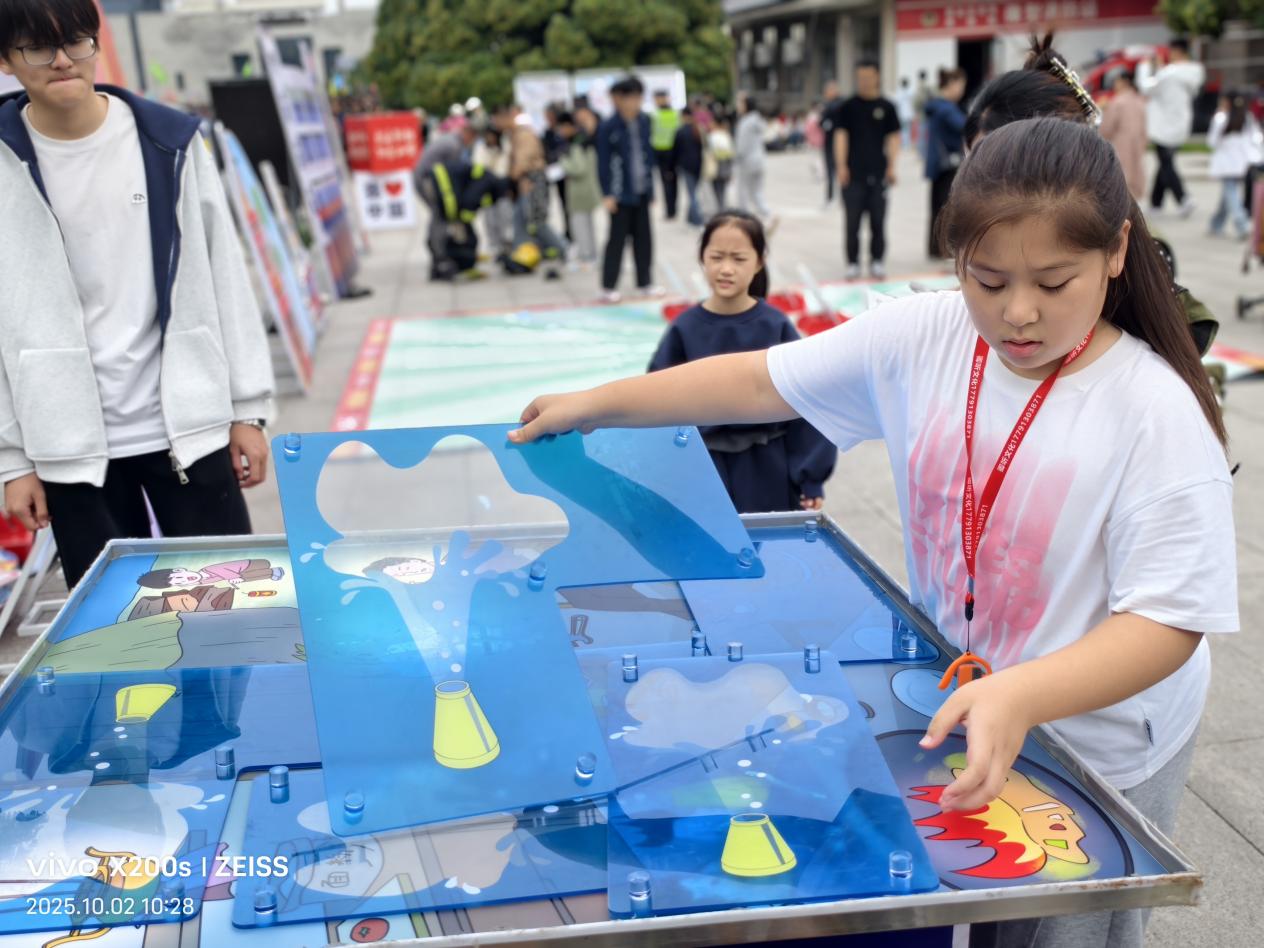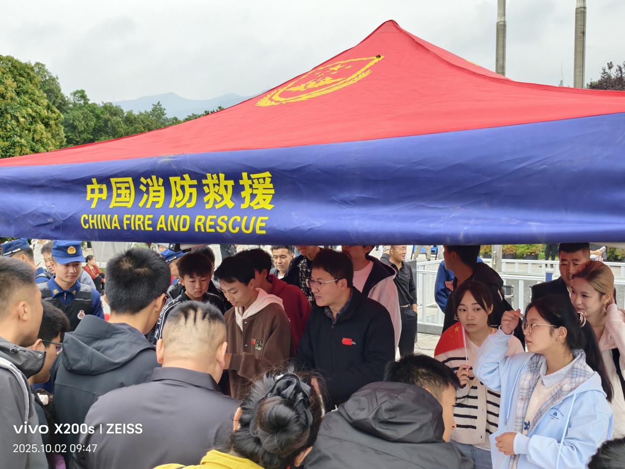 活动现场通过“知识科普+实景演练+互动问答”形式,以景区实际场景为课堂,聚焦假期外出旅游期间消防安全知识,为广大群众及游客普及实用的消防安全常识。宣传员对灭火器、简易防烟面罩、应急照明灯等器材进行了详细讲解,让游客掌握扑救初起火灾的技能;用笔书写对伟大祖国的祝福,引导小朋友的爱国情怀;“垂钓”消防安全知识竞赛、知识展板宣讲,让游客通过娱乐的形式掌握消防安全知识;自建房与电动自行车火灾实验模型的现场演示,将活动推向高潮,触目惊心的画面让游客深刻体会到“防火于未燃”的极端重要性。
