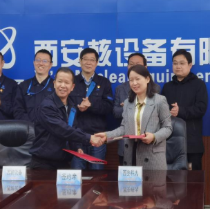 随后,双方代表罗振敏、李军业签约了校企合作协议,赵婧昱、谢少峰为“学生实习实践基地”揭牌。肖雨生等领导陪同参观西安核设备有限公司东区、西区的车间,并做了详细介绍。