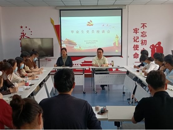 党委于2022年5月27日中午在临潼校区骊山校园14号教学楼320会议室,召开2022届毕业生转正党员座谈会。座谈会由学院党委书记刘文刚主持。学院党委副书记田园,2018、2020级本科生党支部委员会委员,以及近期转正的33名2022届毕业生党员参加了座谈会。