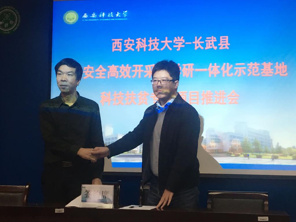 教师党支部院金永飞教授和张超教授分别与校科技处处长文虎教授签订了科技扶贫项目协议书。