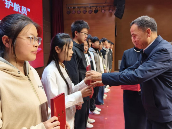 随后,举行了“学业护航员”聘任仪式。在与会师生的共同见证下,陈春林逐一为受聘的学生颁发聘书。一纸聘书,不仅象征着荣誉与信任,更是一份沉甸甸的责任与承诺。