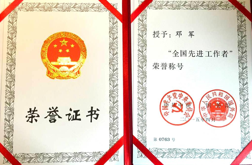 2015年庆祝“五一”国际劳动节暨表彰全国劳动模范和先进工作者大会4月28日在北京举行。中共中央总书记、国家主席、中央军委主席习近平发表重要讲话。李克强主持大会。张德江、俞正声、王岐山、张高丽出席。刘云山宣读表彰决定。2968名全国劳动模范和全国先进工作者接受表彰。我院邓军教授荣获“全国先进工作者”称号并参加表彰大会,并聆听了习近平总书记的重要讲话。