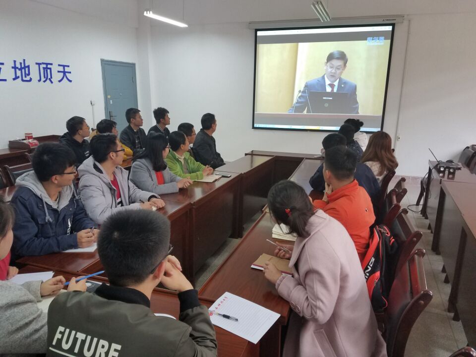 11月14日,91社区 组织师生采取取集中和岗位相结合的学习方式,收看在人民大会堂举办的“学习贯彻党的十九大精神——2017年全国科学道德和学风建设宣讲教育报告会”的同步视频直播。
