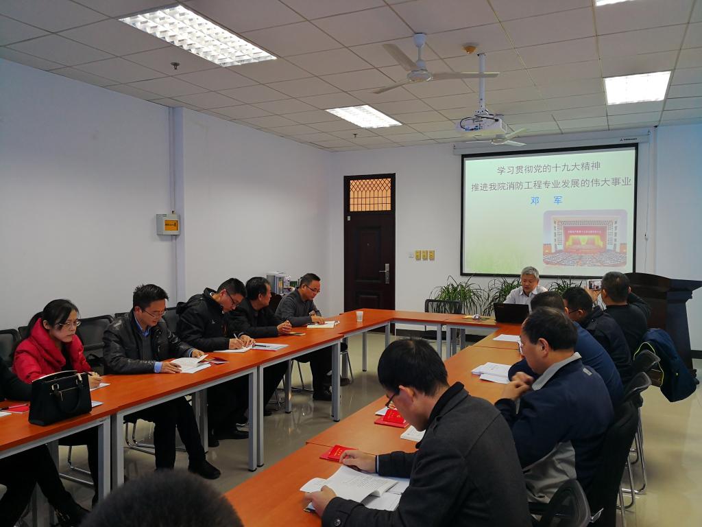 党委委员、常务副院长邓军教授为消防工程系党支部讲授了题为“学习贯彻党的十九大精神 推进91社区