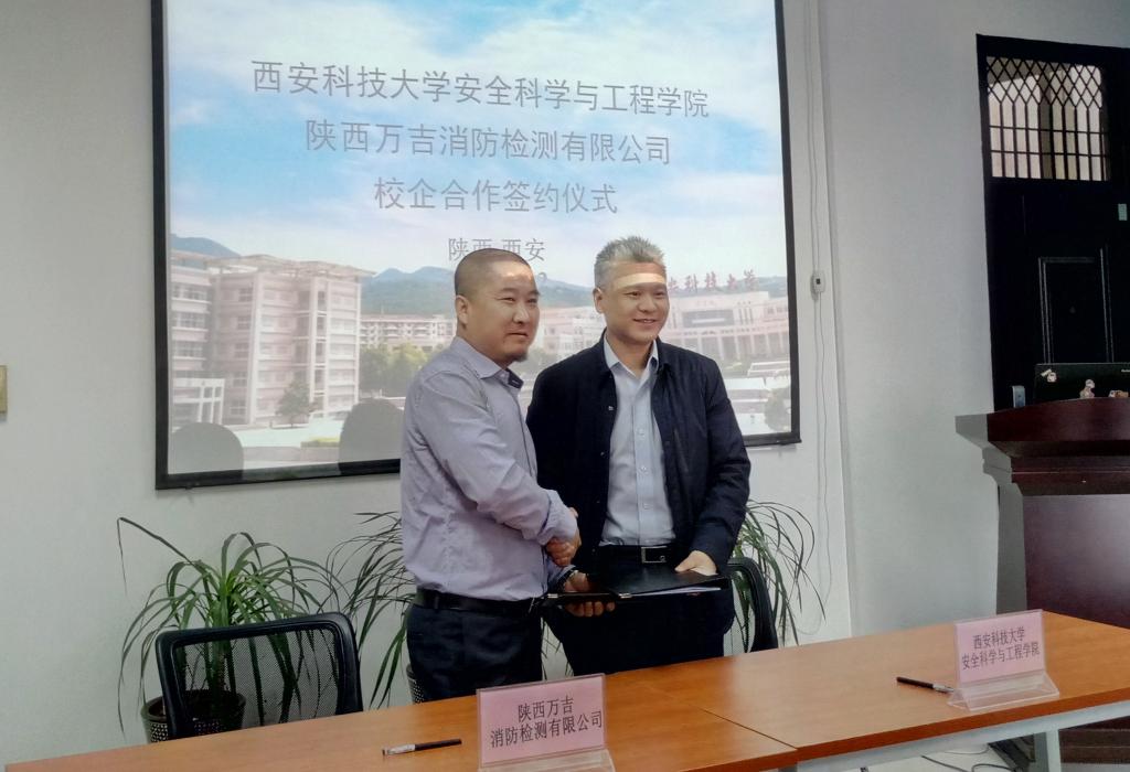 与陕西万吉消防检测有限公司校企合作签约仪式在学院雁塔校区1508会议室举行。学院党委书记杜勇、常务副院长邓军,陕西万吉消防检测有限公司副总经理、我校工商管理99级校友支亮出席签约仪式,学院相关负责人、消防系负责人及企业方相关部门负责人参加签约仪式。