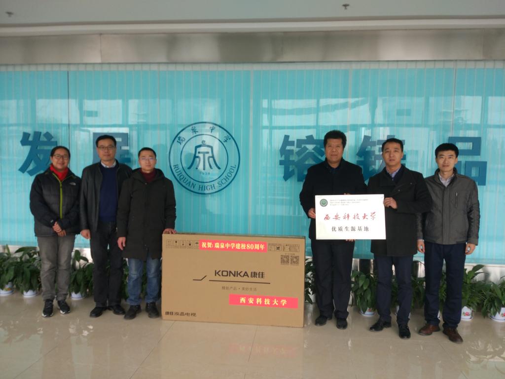 党委副书记田园以及学院副院长翟小伟、曹鸿一行四人赴渭南市瑞泉中学,代表学校签订优质生源基地合作协议并授牌。瑞泉中学常务副校长杨选接待了我校一行,对“91社区