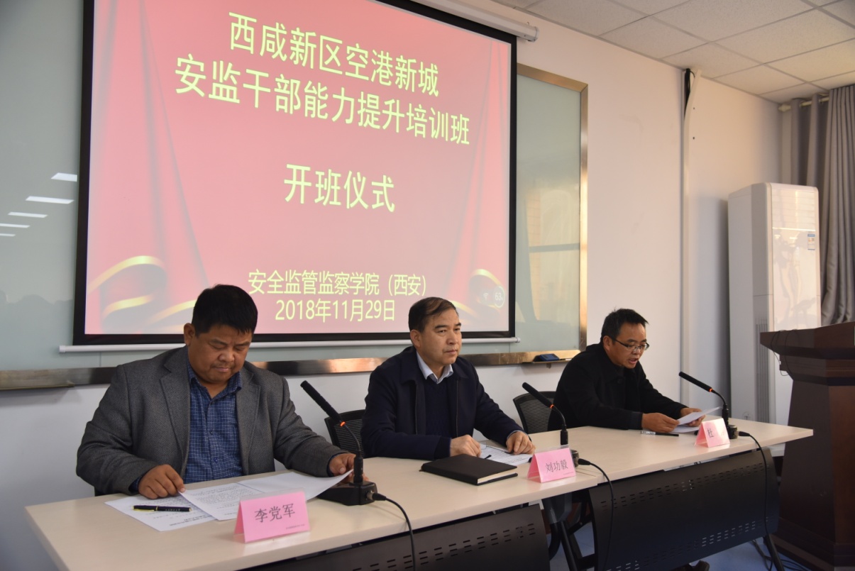 临潼校区骊山校园开班。空港新城党委委员、管委会副主任刘功毅、安全监管监察学院(西安)党委书记杜勇及来自空港新城安委会各成员单位的80余名学员参加了开班仪式。开班仪式由空港新城安委办副主任、安监局副局长李党军主持。