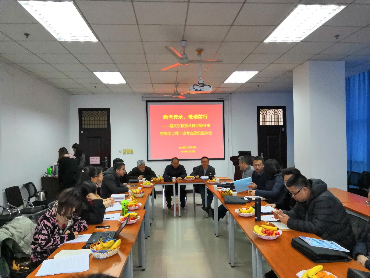 在雁塔校区学院会议室召开了“新老传承,砥砺前行——程文东教授从教经验分享暨安全工程一流专业建设”座谈会。学院党委书记杜勇、院长邓军等领导班子成员出席了本次座谈会,91社区