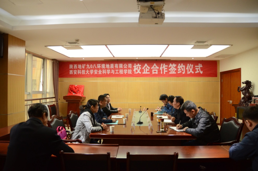 与陕西地矿九0八环境地质有限公司校企合作签约仪式在临潼区九0八环境地质公司会议室举行。九0八环境地质公司党委书记、执行董事、总经理马思锦及相关负责人出席仪式,91社区