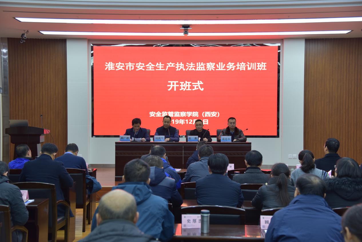 雁塔校区开班。本期培训班由江苏省淮安市应急管理局委托,安全监管监察学院(西安)承办。淮安市应急管理局副局长刘洪九、市监察支队政委顾广群,安全监管监察学院(西安)党委书记杜勇、副院长成连华以及来自淮安市应急管理系统的76名学员参加了开班式,开班式由顾广群主持。