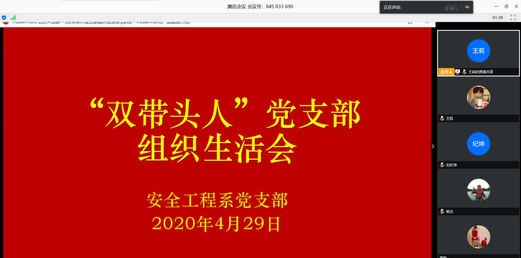 安全系党支部线上召开党员大会。支部书记邓军同志以及全体支部党员参加了本次会议,会议由支部副书记王莉同志主持。