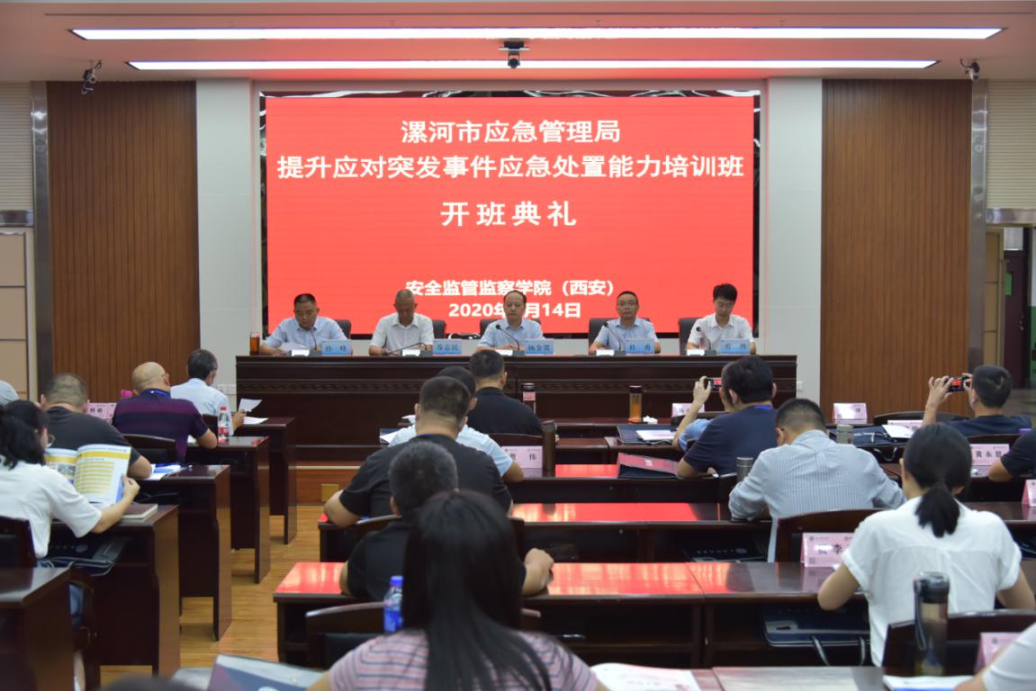 雁塔校区开班。漯河市应急管理局二级调研员杨金贯,副局长苏志民、孙峰,安全监管监察学院(西安)党委书记杜勇、副院长曹鸿以及来自漯河市应急管理系统的51名学员参加了开班式,开班式由孙峰主持。