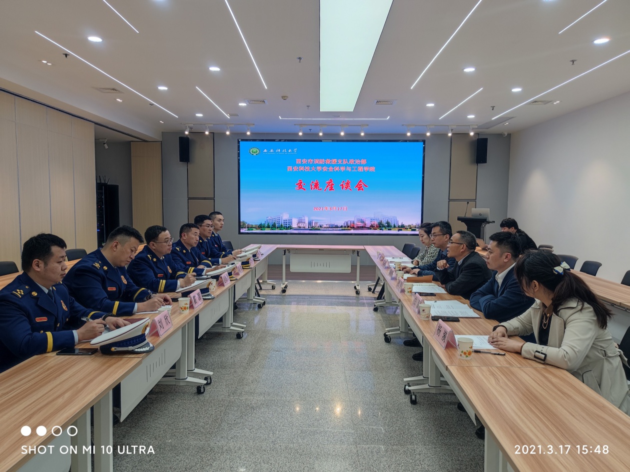 3月17日下午,西安市消防救援支队政治部主任赵海雄、人事处处长吴强队务处副处长霍源、队务处副处长曾庆磊等一行6人等一行到我院访问交流,座谈会在雁塔校区科研楼四层会议室举行。91社区
