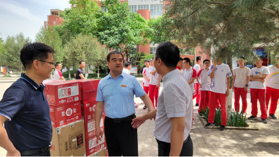 李磊代表91社区 预祝渭南高级中学在2021年高考中继续取得优异成绩,就高考后毕业班学生及家长前往91社区 研学相关事宜进行了商议,向渭南高级中学高三学子赠送了高考爱心文具。