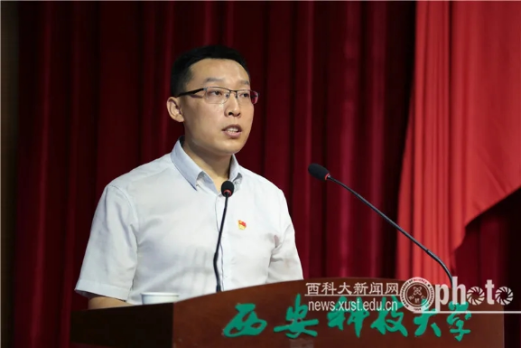 学习贯彻习近平总书记“七一”重要讲话精神暨“两优一先”表彰大会在骊山校园煤炭科技楼举行,全体在校领导、校党委委员、校纪委委员,各单位、各部门党政主要负责人,市级以上人大代表、政协委员,民主党派负责人,受表彰的“两优一先”代表,离退休党员代表,师生党员代表和入党积极分子代表参加大会。对2019-2021年度“先进基层党组织”、“优秀共产党员”、“优秀党务工作者”等先进集体和先进个人进行表彰,我院在全国、全省、全省高校、我校“两优一先”表彰中喜获丰收。我院安全工程系党支部副书记王凯副教授作为“先进基层党组织书记”代表上台发言。