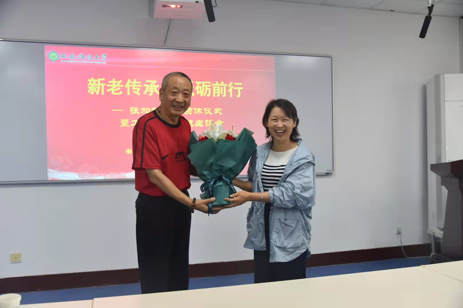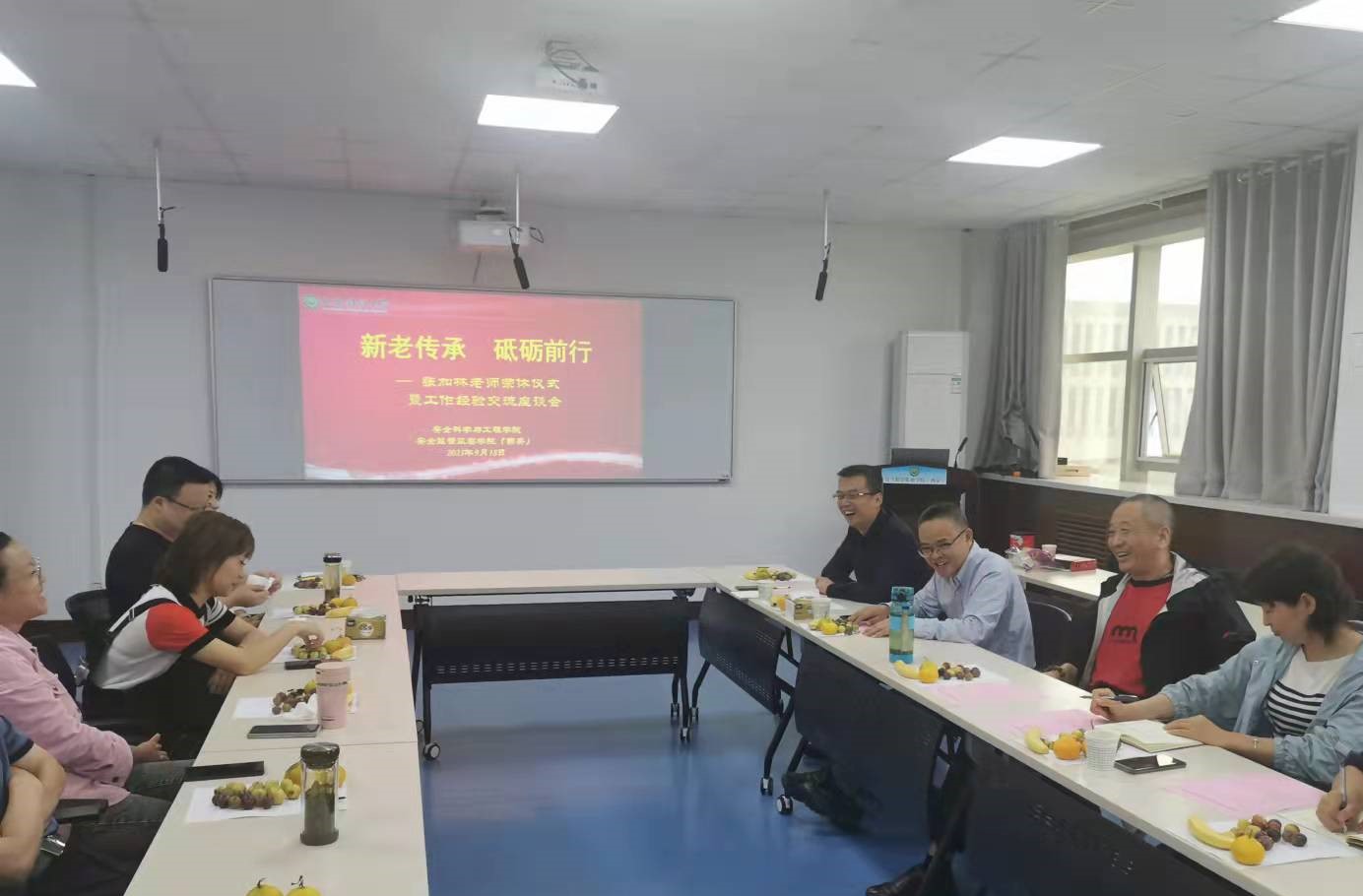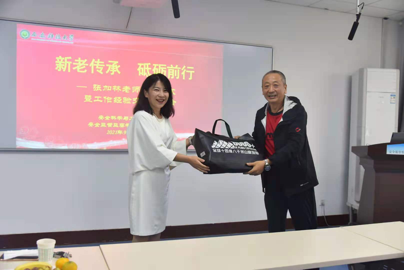 在临潼校区14教504教室举办“新老传承 砥砺前行”—张加林老师荣休仪式暨工作经验交流会。学院班子成员、工会委员、团委书记、全体行政干部及安监学院全体工作人员参加仪式。