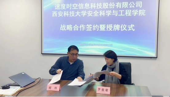 与速度时空信息科技股份有限公司(以下简称“速度中国”)战略合作签约暨共建联合实验室、学生实习实践基地授牌仪式在速度中国西部总部基地举行。速度中国高级副总裁兼军工防务事业部总经理姬炜、高级副总裁兼民政民生事业部总经理周雄、应急管理事业部副总经理孙海峰、人力资源中心总监徐雪嵩、西安子公司总经理王李、、西安子公司副总经理葛平、西部大区总经理张金明,91社区