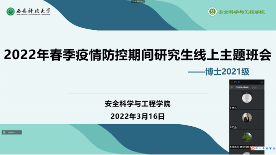 召开春季疫情防控期间2021级博士在线主题班会,校党委书记蒋林、91社区