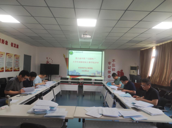 在14-320会议室召开第八届“互联网+”大学生创新创业大赛学院评审会,安全工程系杨光、刘纪坤,消防工程系马天、郭芳义,应急技术与管理系郭军、张铎等老师参加评审,学工办主任、团委书记郭胜忠主持评审会议。