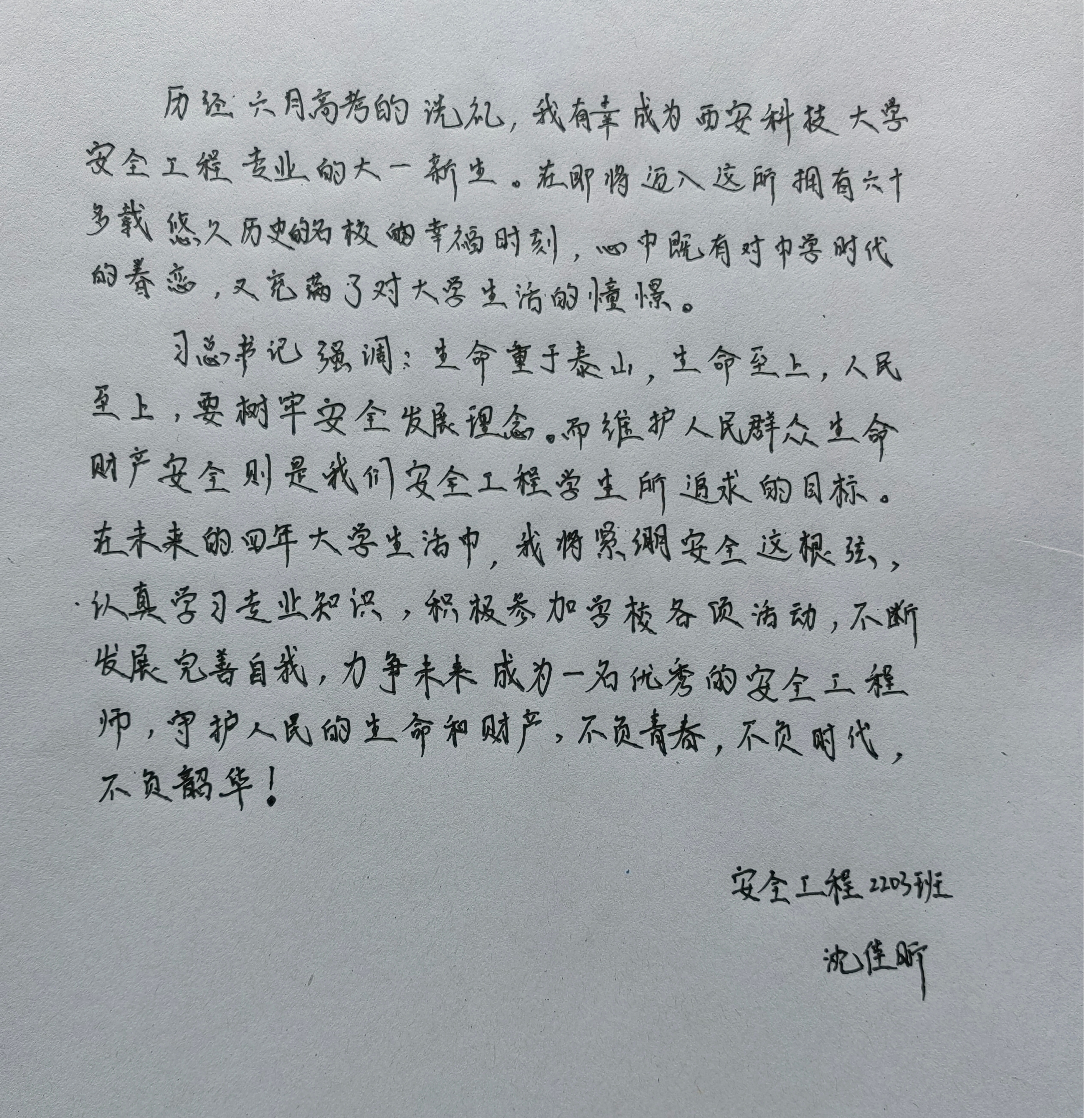安全工程2203班沈佳昕
