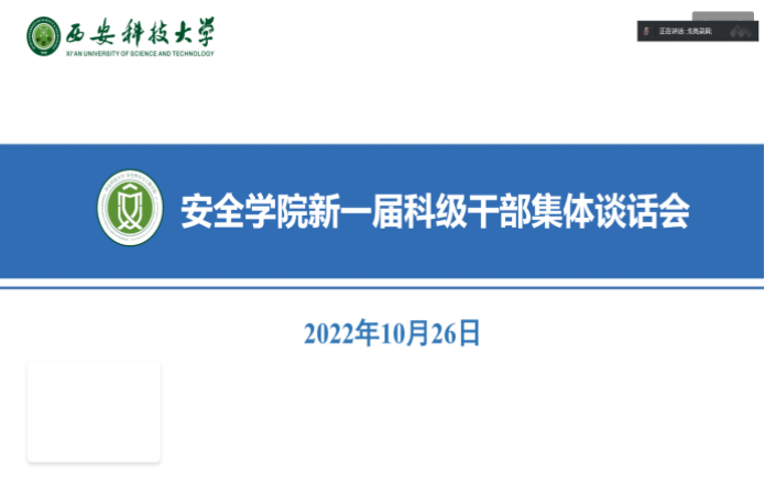 以线上与线下相结合方式召开新一届科级干部集体谈话会。会议由学院党委书记刘文刚主持。学院办公室主任刘戈亮,学工办主任、团委书记周学刚,教务科研办公室主任李超,研究生及学科办公室主任姚海燕,综合办主任闫黎东,教务办公室主任尚云鹏参加会议。