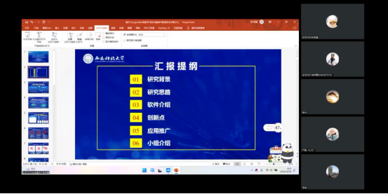 四名负责人分别围绕作品的科学性、创新性、可行性、实用性等方面进行详细介绍。评委老师对参赛作品给予了充分肯定,对作品存在的问题提出了进一步完善的意见建议。