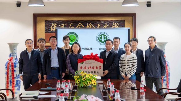 在鄂尔多斯第一中学,在副校长张文军陪同下,我校一行首先参观了校史馆、生态馆、科技馆、标本馆、学生餐厅及公寓等。座谈会上,副校长高丽敏对我校一行的来访表示热烈欢迎,介绍了市一中八十余年的发展历程、办学特色和育人成绩。她指出,通过与高校的交流,加深了对高校学科及专业的认识,也是对中学教学事业的很好反馈,希望两校加强合作交流。刘文刚介绍了我校及学院办学历程、学科特色、师资力量、人才培养以及近年来取得的成绩。刘文刚指出,鄂尔多斯第一中学是内蒙古自治区一所闻名遐迩的历史名校,多年来一直向我校输送优秀学子,希望两校之间加强共建共享,共同培养德智体美劳全面发展的社会主义建设者和接班人。随后,刘文刚代表学校向鄂尔多斯一中授予“优质生源基地”牌匾,双方代表张文军、曹鸿签订了优质生源基地共建协议。