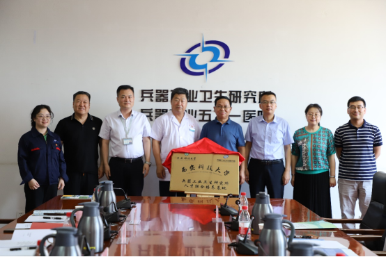 党委书记刘文刚、副院长成连华、安全工程系副主任易欣一行到兵器工业卫生研究所举行“人才联合培养基地” 及 “科教实践基地”揭牌仪式。揭牌仪式由董国强主持。兵器工业卫生研究所科技委主任郭永明、职业安全与健康中心主任董国强、职业安全卫生管理处副处长梁馨月、职业安全与健康中心副主任刘亚杰、相关技术人员参加会议。