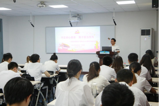 学院党委书记刘文刚以“不忘初心使命 勇于担当作为”为题,从介绍“七一”建党纪念日的由来入手,结合学习贯彻习近平总书记在庆祝中国共产党成立100周年大会上的重要讲话精神,解读了中国共产党的初心使命;结合学习贯彻《中国共产党章程》,解读了中共党员的条件、义务和权利;结合学习《好党员是怎样炼成的》书籍,解读了“四讲四有”好党员标准。希望广大青年学生党员不忘入党初心、牢记光荣使命,从自己做起、从小事做起,一要学习掌握党的百年奋斗历程,从而更加懂得珍惜美好生活的来之不易;二要学习贯彻习近平新时代中国特色社会主义思想和党章党规,做到真学真懂真用;三要刻苦钻研科学文化知识,守好学生本职,为服务社会打下坚实基础;四要切实起到模范带头作用,关键时刻站出来,时时处处走在前;五要勇于开展批评和自我批评,对照党章党规和校规校纪,时常检视自己,不断提高进步。