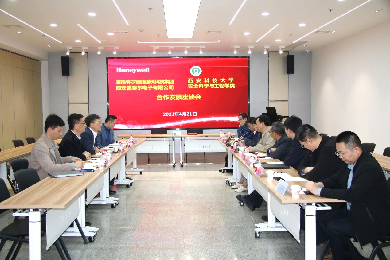 李烨副总裁指出,霍尼韦尔作为一家全球500强高科技企业,业务聚焦航空、智能建筑、特性材料以及物联网等方面,智能建筑科技集团业务涉及楼宇、家庭和工业控制技术,在节能、环保、安全、安防等相关领域具有全球领先实力,为中国加快产业升级和建设安全宜居、资源节约型、环境友好型社会做出积极贡献。集团在西安已投资设立“霍尼韦尔西区总部及智能消防安防大中国区总部”项目,期望与学校加强产学研合作,结合各自优势进行重点规划,努力推进合作项目落地实施。霍尼韦尔(西安)有限公司及西安盛赛尔电子有限公司总经理何军介绍了西安工厂的基本情况。