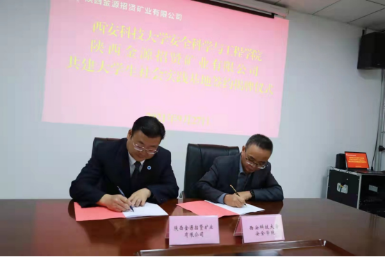与陕西金源招贤矿业有限公司校企合作签约仪式在招贤矿业举行。学院党委书记杜勇、副院长成连华、安全工程系副主任闫振国,高级工程师刘文永、招贤矿业总经理纵峰、党委副书记兼纪委书记李治龙、纪委副书记胡双琪、总工程师何光安、副总经济师马翔、安全副总经理华海洋、通风副总工程师杨眷、办公室主任卓永峰和校友代表刘刚等出席签约揭牌仪式。会议由招贤矿业党委副书记兼纪委书记李治龙主持。