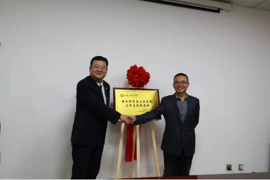 随后,学院党委书记杜勇和招贤矿业总经理纵峰代表双方签订了校企合作协议,并上台进行了校企合作社会实践基地揭牌。
