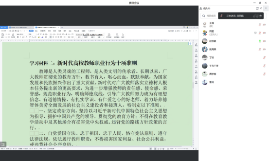 袁刚领学了习近平总书记关于“三个牢固树立”、“四有”好老师、“四个引路人”、“四个相统一”、“六要”、“大先生”等关于师德师风建设的重要指示批示精神,段思颖领学了《新时代高校教师职业行为十项准则》,同超领学了违反高校教师职业行为十项准则的典型案例。