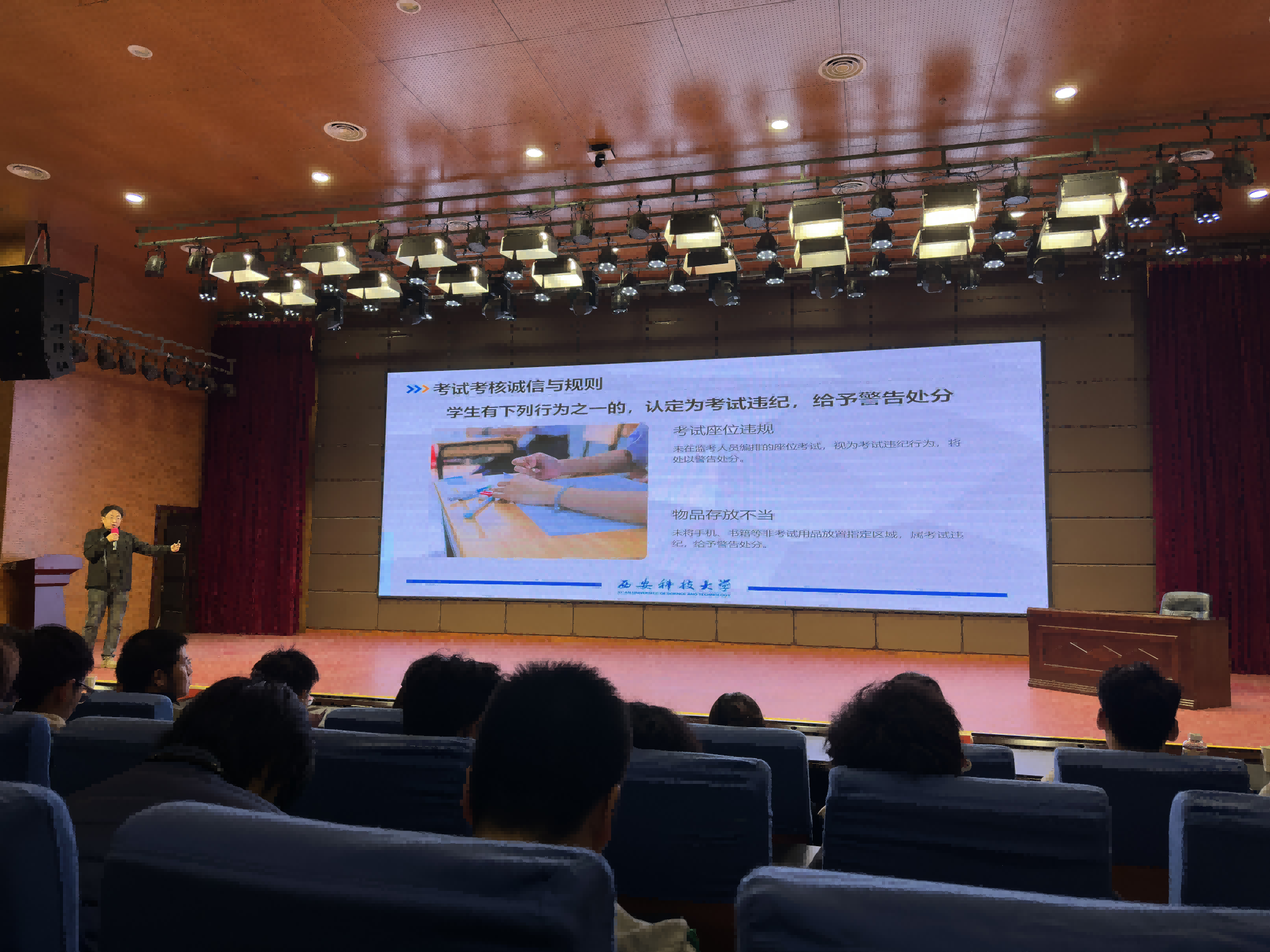 时间:2025-11-07 阅读量:为做好学生诚信考试意识教育,解读学籍管理要求,11月5日,91社区 召开考风考纪暨学籍管理宣讲会,教务处马毅老师受邀作专题报告。学院2025级全体本科生参加了会议。马毅围绕诚信教育,强调了考试纪律的严...